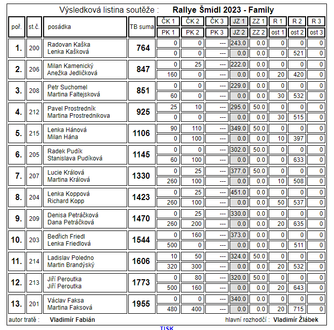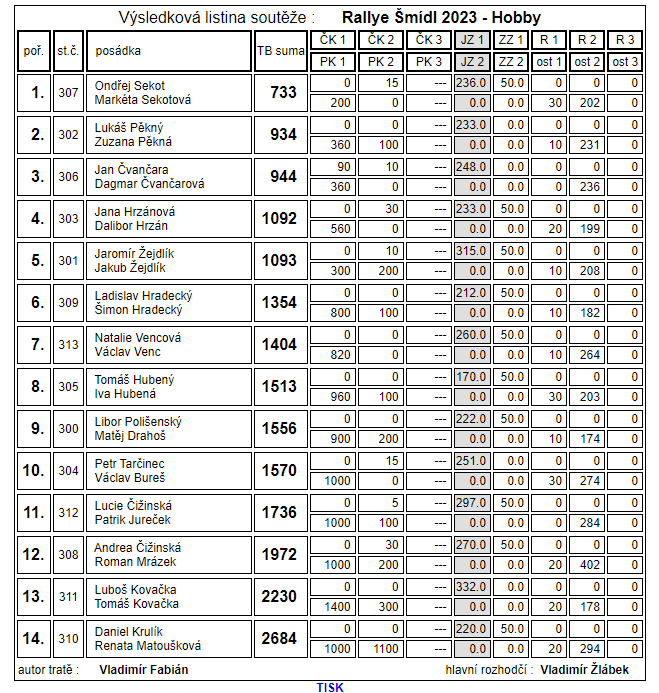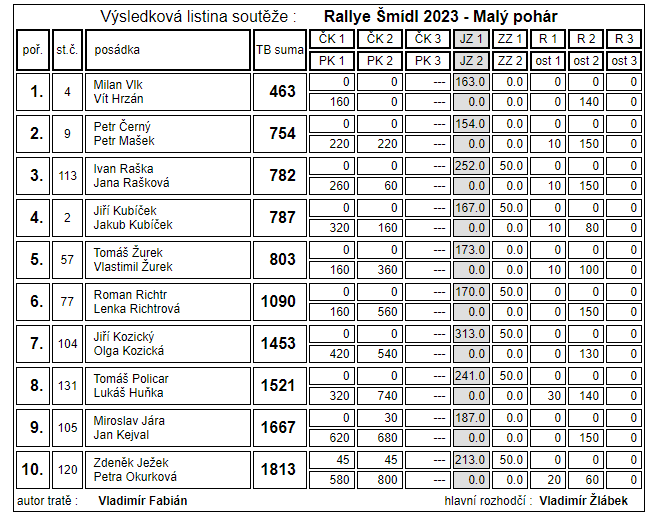 Jubilejní 10. ročník automobilové orientační soutěže Rallye Šmídl odstartoval v sobotu 22. 4. 2023 ve Sportovním a rekreačním areálu Pod Černým lesem v Žamberku.